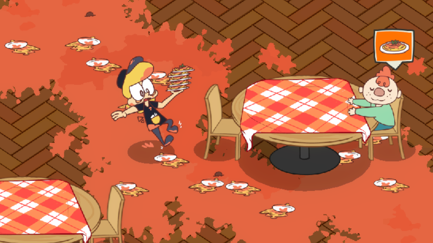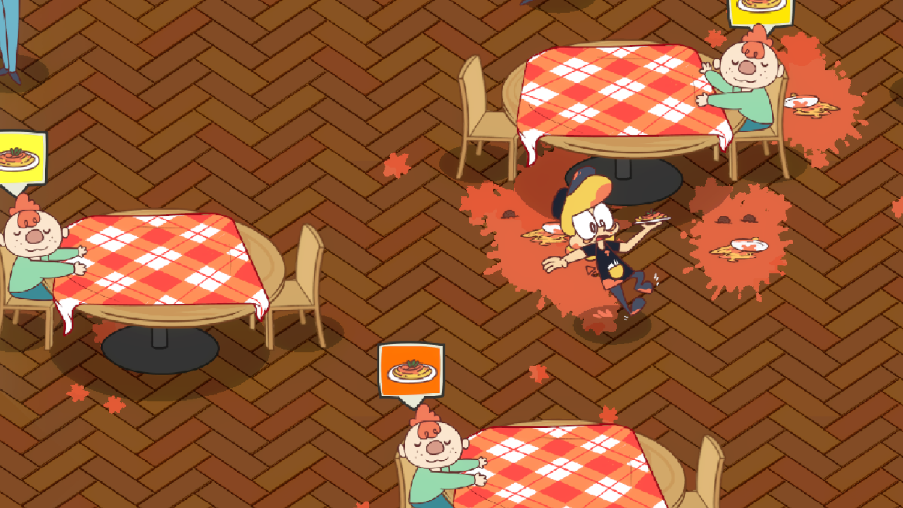 Help Geddy serve pasta to customers in a timely manner, but be careful! Running into something too fast will cause her to drop a plate and make a mess. How long can you keep the restaurant open?